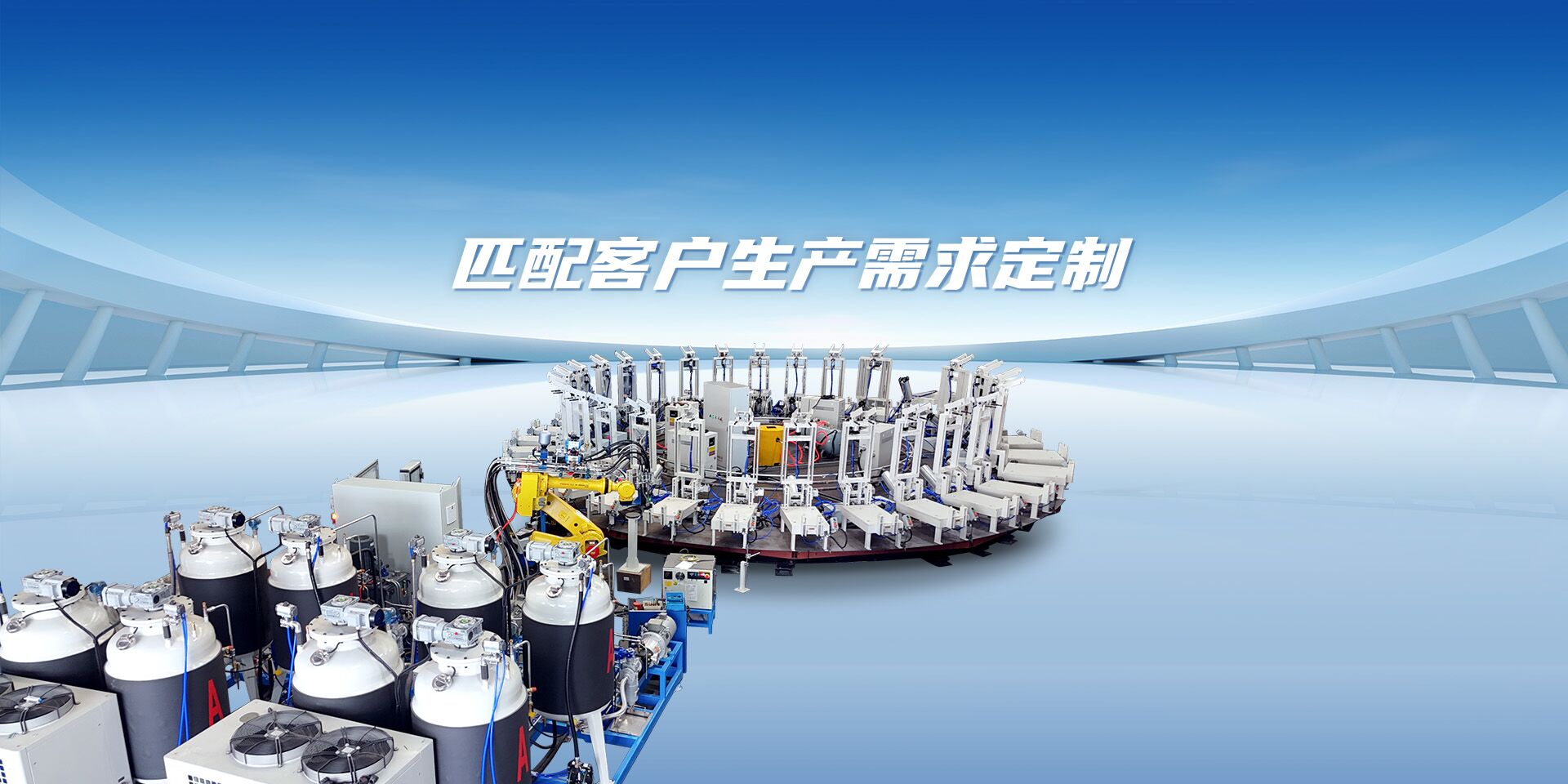 領新機械公司成立近二十年,是一家擁有十幾項專利,集聚氨酯澆注設備、相關自動生產線、配套設施及生產工藝技術支持為一體的綜合性服務商,即“聚氨酯整體方案服務商”。